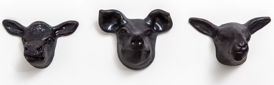 Wall mounted ceramic animal heads