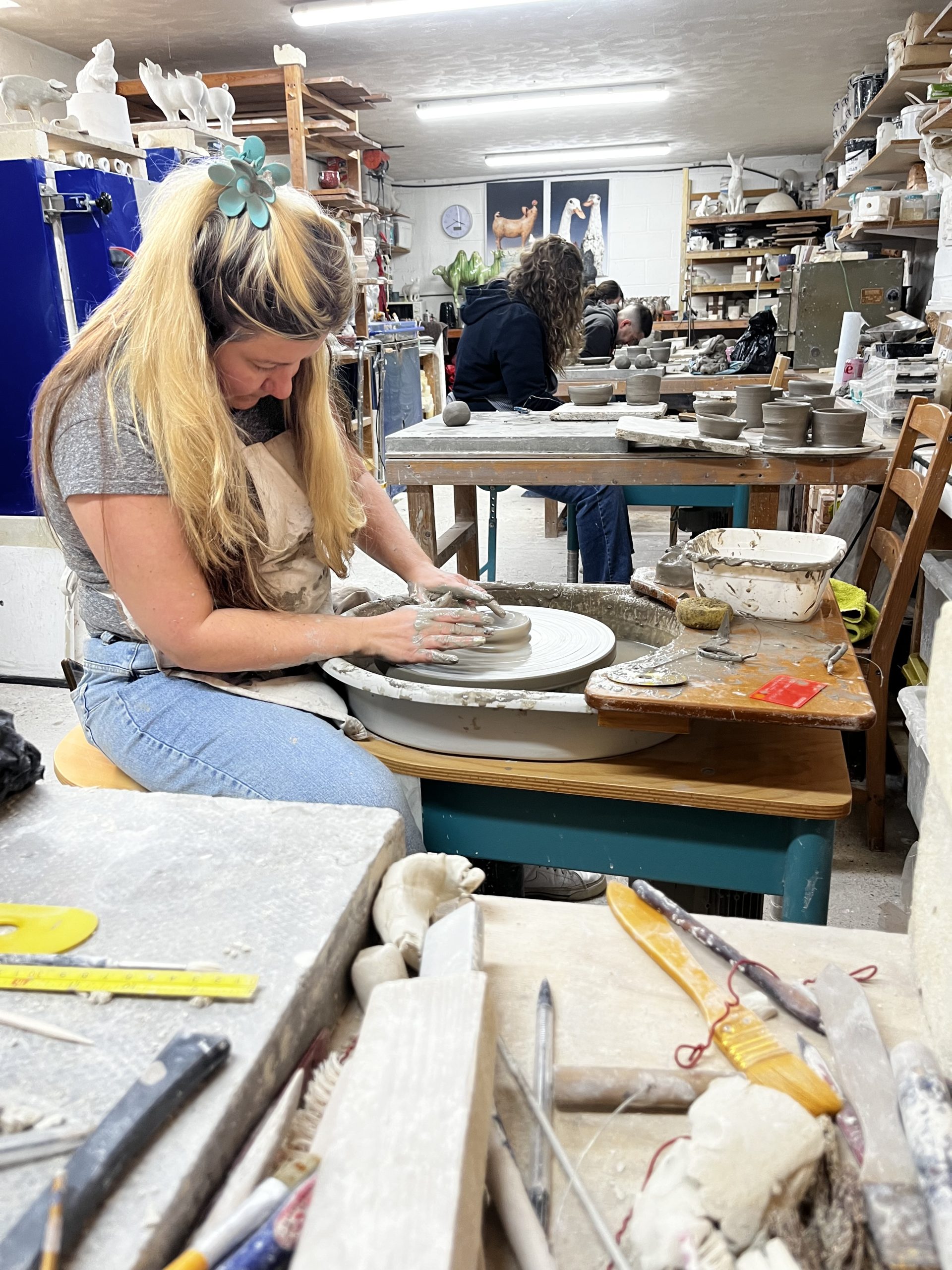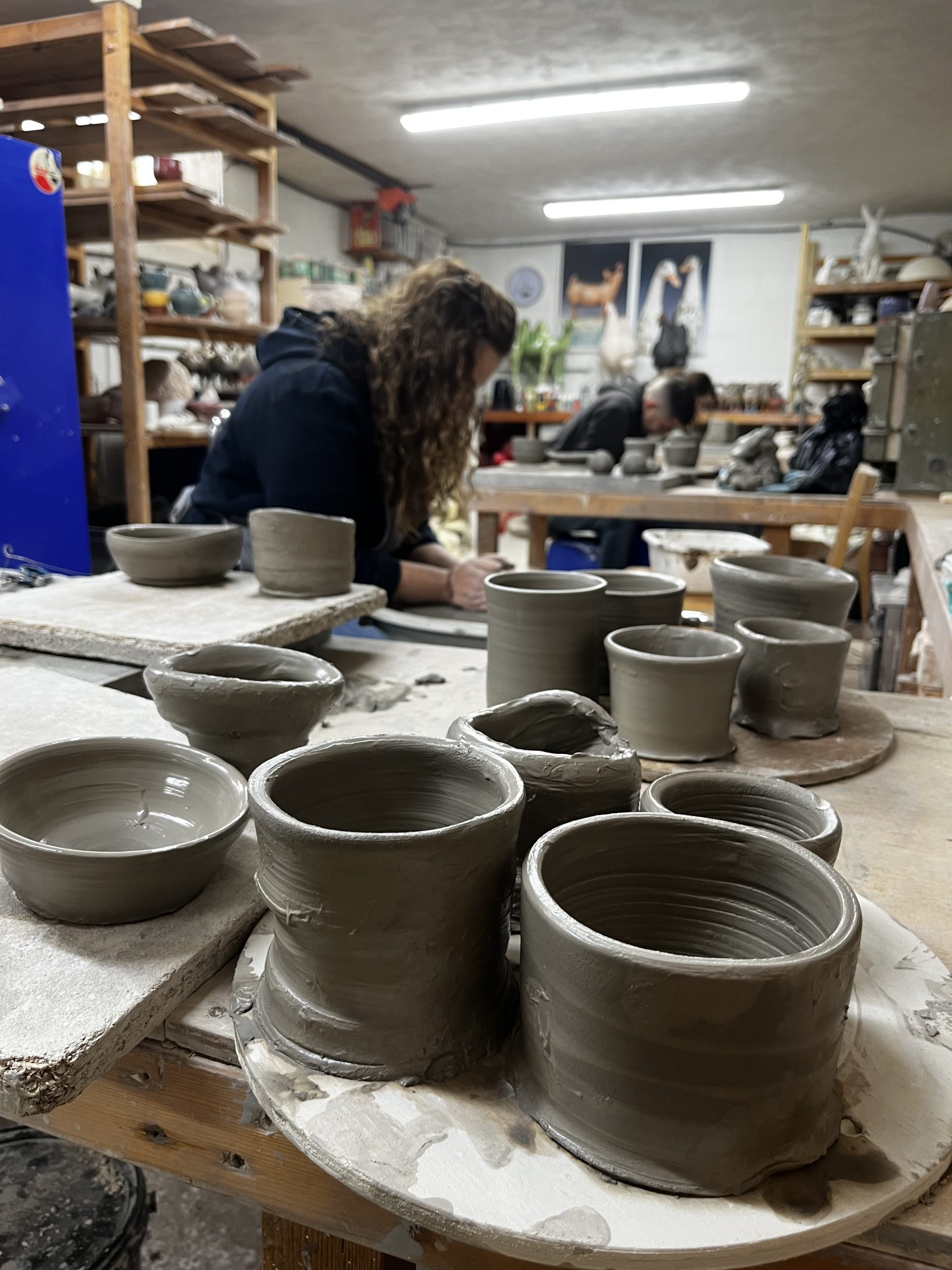 The cost includes me finishing your pots the following day, firing and glazing all work produced.